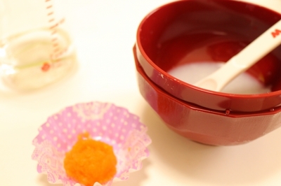 消化のよいすりつぶした10倍粥から始めます。